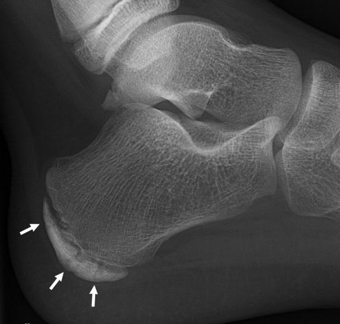 При определении диагноза врач опирается на симптомы заболевания и результаты различных исследований. На начальном этапе пациент отправляется на рентгенологическое обследование. При этом снимок делается не только костей пятки, но и всей стопы, так как есть вероятность наличия осложнений или сочетанных патологий. Рентген-снимок может показать травмы, артроз и другие заболевания костей стопы.
