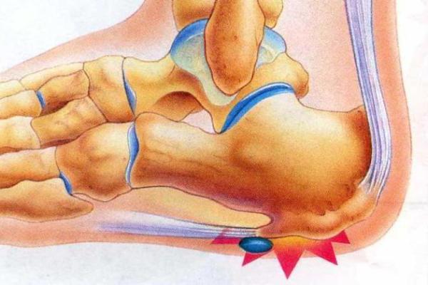 Начало патологии бывает как острым, так и вялотекущим. Первым признаком является боль в одной или обеих пятках после бега или другой нагрузки с участием ног (долгая ходьба, прыжки). Область пяточного бугра увеличивается, и пятка выглядит опухшей. Вместе с тем симптомы воспаления отсутствуют, однако кожа в пораженном месте может краснеть и становиться горячей на ощупь.