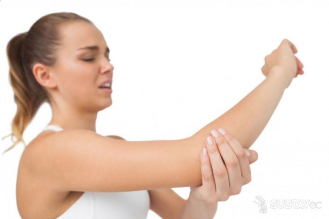- Воспаление суставов локтя или запястья (артрит, артроз, бурсит и иные патологии).
