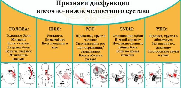 При дисфункции височно-нижнечелюстного сустава (ВНЧС) могут возникать головные боли, человека постоянно сопровождает хруст в челюсти.