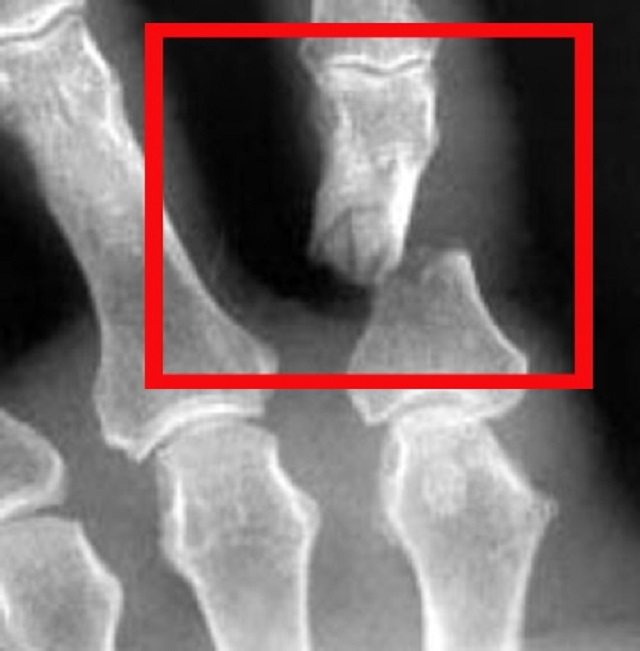 - Боль в суставе. Она может быть достаточно сильной, ведь в пальце находится множество нервных окончаний, и отсутствуют амортизирующие удар мягкие ткани.