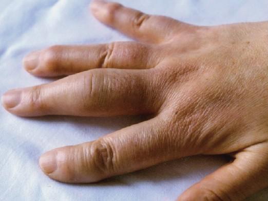 - Хронический синовиит сустава пальца кисти. При несоблюдении лечебных рекомендаций, ранней физической нагрузке пальца возможен переход реактивного синовиита в хронический. Он проявляется постоянным утолщением сустава, болями при нагрузках, ограничением подвижности.