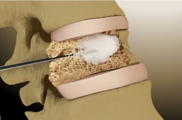 В поврежденный позвонок под контролем рентгена вводится цементирующее костное вещество –«костный цемент». Это сложное химическое соединение, при застывании образующее ткань аналогичную с костной. Оно быстро застывает и возвращает позвонку опорную функцию. Болевой синдром, в большинстве случаев, исчезает.