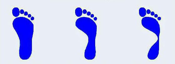 Увеличение кривизны продольного свода приводит к росту его высоты, контакт с опорой в средней части подошвы отсутствует. Это и называют полой стопой. Вся опора приходится на пальцы ног и пятку. Средняя часть не нагружена.