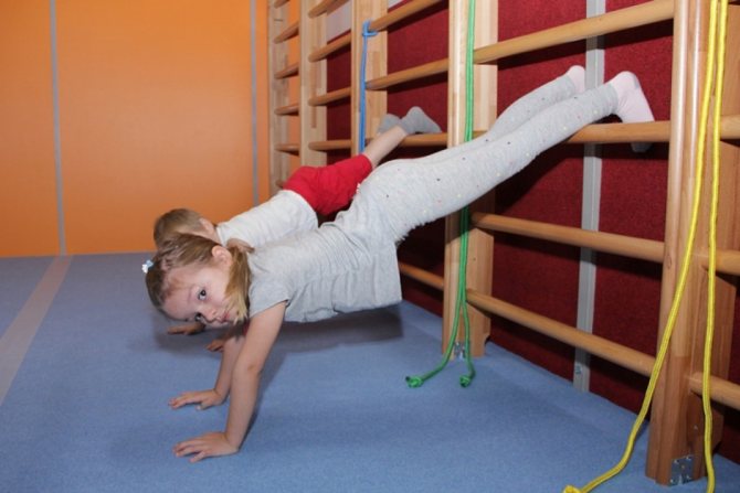 Также существуют простые способы ходьбы в стойке на руках, которые тоже можно быстро освоить. Например, упражнение «тачка», когда тренер держит ребенка за ноги примерно под углом 90 градусов, можно выше, а он в этом положении идет на руках. С этим элементом также легко справляются дети с 1,5-2 лет.