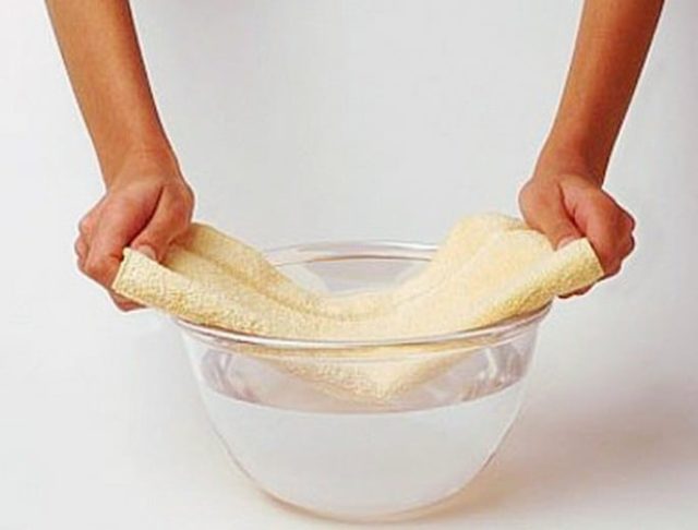 - Смочить в растворе марлевую салфетку;