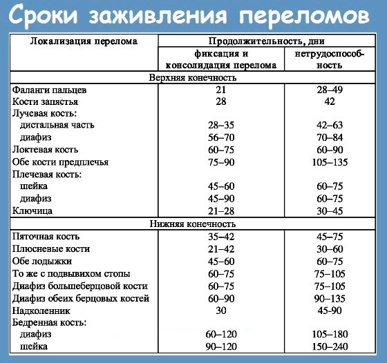Сроки заживления переломов нижних конечностей: