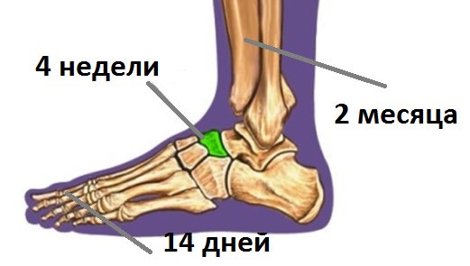 - плюсневая кость — 21-42 дня;