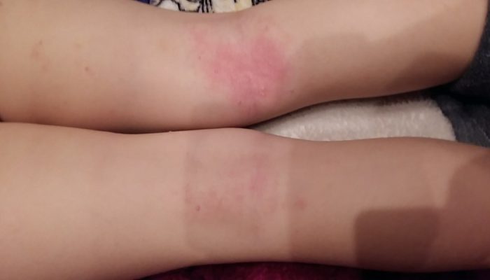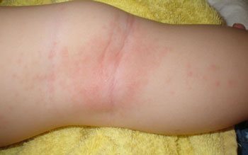Еще один пример хронического аллергического заболевания, развитие которого также сопровождается появлением красных пятен. Патологическое состояние сопровождается сильным зудом. В его течении часто отмечаются рецидивы.