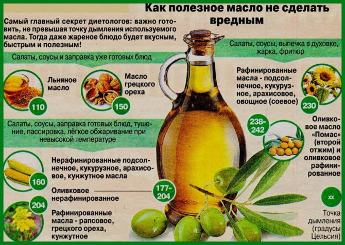 | Оливковое, льняное, кукурузное масло | Фастфуд, чипсы, соленые орешки, сухарики, мороженое |