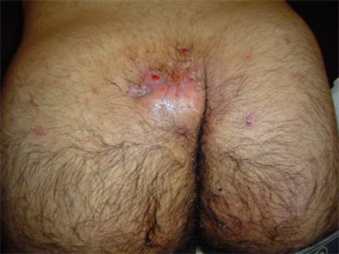 Шишка в районе копчика может быть очень болезненной или никак себя не проявлять. Но в большинстве случаев она вызывает у пациента массу неприятных ощущений – ему тяжело садиться, передвигаться и даже лежать. Иногда появляется жидкость из копчика, имеющая неприятный запах. Если она прозрачная, это не страшно. Но если в ней наблюдаются гнойные примеси, нужно срочно идти к врачу и вырезать ее. Ниже можно увидеть фото «на копчике появилась шишка и выделяется жидкость».