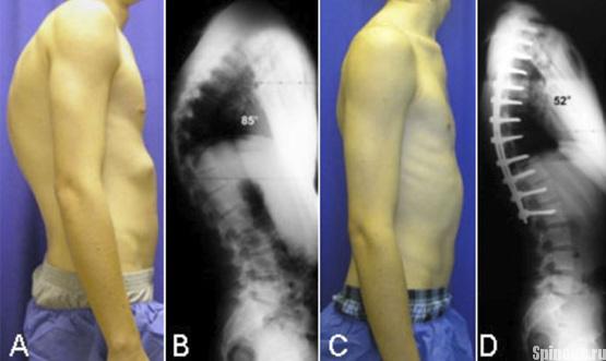 При тяжелом течении кифоза, быстром увеличении угла наклона позвоночника и неэффективности консервативного лечения проводится оперативное вмешательство.