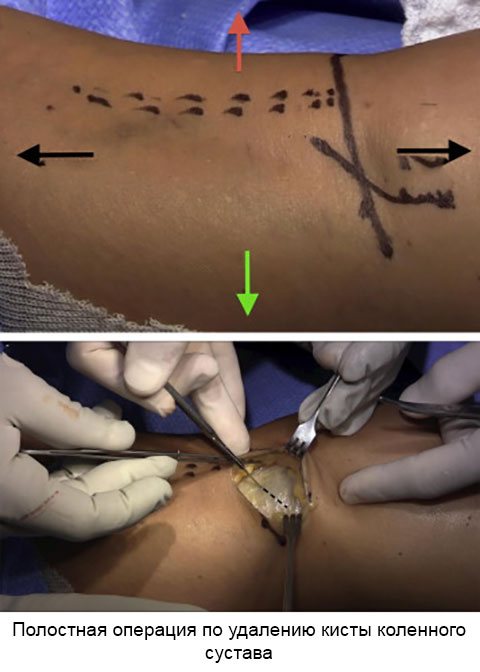 Иногда кисты проходят сами, без лечения (ганглиевые), но чаще требуется пункция или хирургическое удаление оболочки. В 90 % случаев образования излечиваются полностью и без последствий для колена.