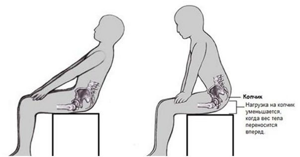 Люди, которые столкнулись с аноректальным копчиковым синдромом, обычно сидят, наклонившись вперед, и стараются не откидываться на спинку стула. В такой позе нагрузка на нижнюю часть позвоночника снижается, и болевые ощущения не так сильны.