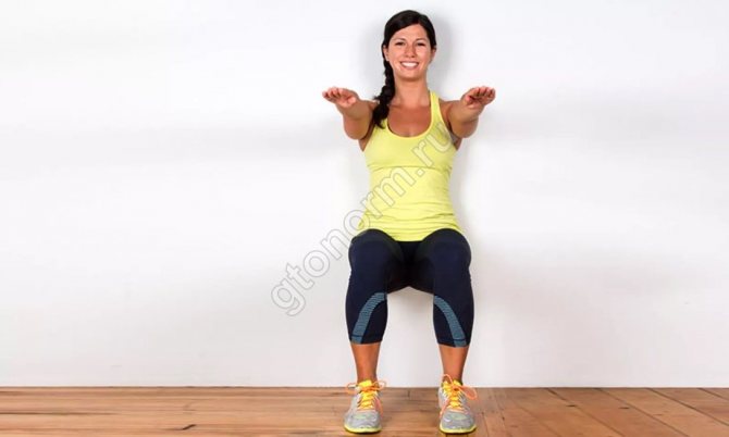 Также выделяют изометрические приседания у стенки, формирующие нагрузку на статическую выносливость. Статическая – значит неподвижная.