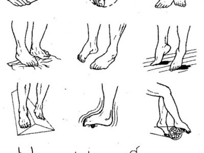 В качестве полезных тренировочных упражнений рекомендуется ходьба на месте: можно сначала ходить на носочках, затем перейти на ходьбу на пятках, потом на внешней стороне стопы.