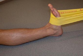 Нужно приобрести эспандер (резиновую ленту). Занятия направлены на преодоление сопротивления резинки: поворачивать ногу внутрь и наружу, сгибать стопу. Упражнения проводятся только после разминки и полного расслабления мышц.