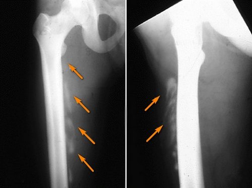 - появляется припухлость на травмированном бедре и абсцессы разного характера, что относят к заболеванию туберкулезного происхождения;