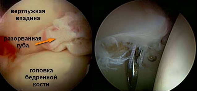 При большом разрыве вертлужной губы проводят артроскопию тазобедренного сустава. Оторванную губу удаляют, устраняя механическую причину боли, или пришивают оторванную часть, что свободно болтается в полости сустава. Изредка при обширном краевом отрыве вертлужной губы накладывают артроскопический шов.