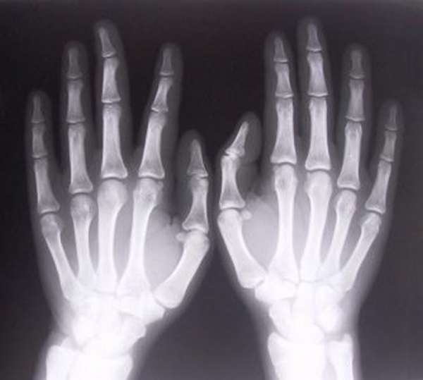 Для того чтобы диагностировать вывих мизинца в некоторых случаях достаточно визуального осмотра. При пальпации в области ладони прощупывается головка соответствующей пястной кости, а на тыльной части суставная поверхность основной фаланги. При повреждении средних и ногтевых фаланг мизинца чаще происходят тыльные вывихи и реже боковые.