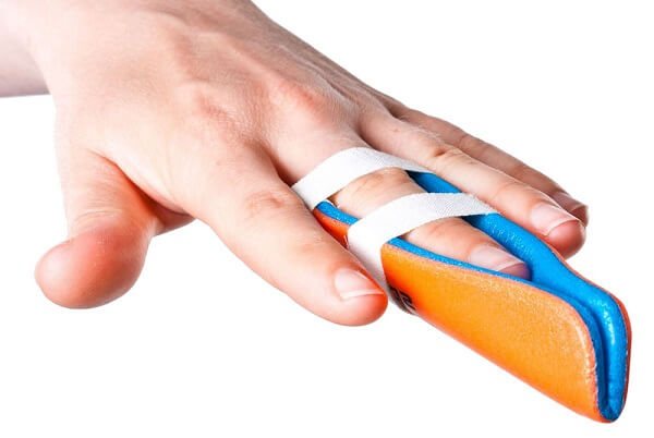 Для того чтобы палец держался в правильном положении и не произошла повторная травма на него накладывают гипсовую лонгету. В зависимости от сложности травмы ее снимают через 2 – 4 недели.